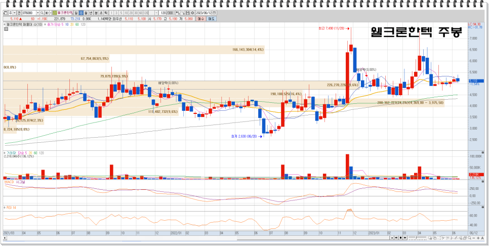 ·22~23년 : 고점 7,490원 / ·저점 3,215원
