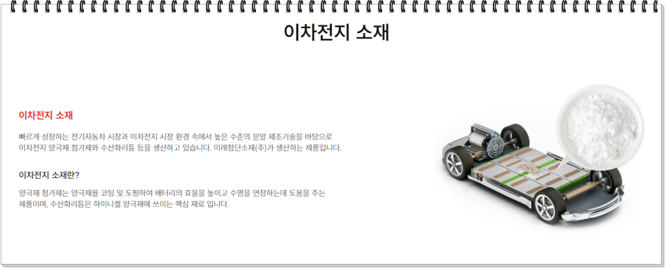 미래나노텍은 양극재 첨가제와 수산화리튬 분쇄 전문기업으로 수산화리튬과 첨가제 원료를 분쇄 가공해 양극재 기업에 공급하여 수산화리튬 관련주로 포함이 됩니다.