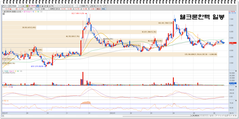 ·22~23년 : 고점 7,490원 / ·저점 3,215원