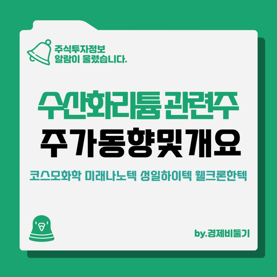 수산화리튬 관련주인 코스모화학 미래나노텍 성일하이텍 웰크론한텍 주가동향 및 기업개요를 정리해보는 시간을 갖도록 하겠습니다.